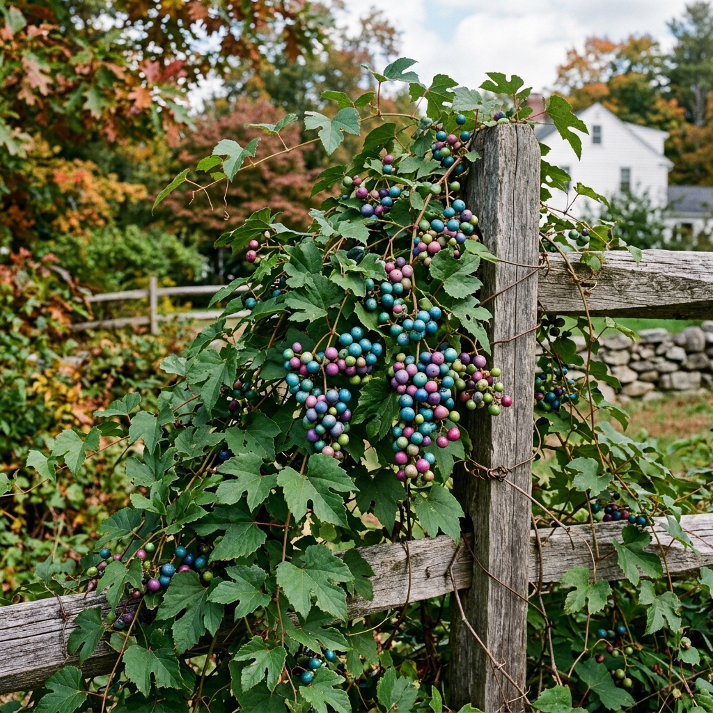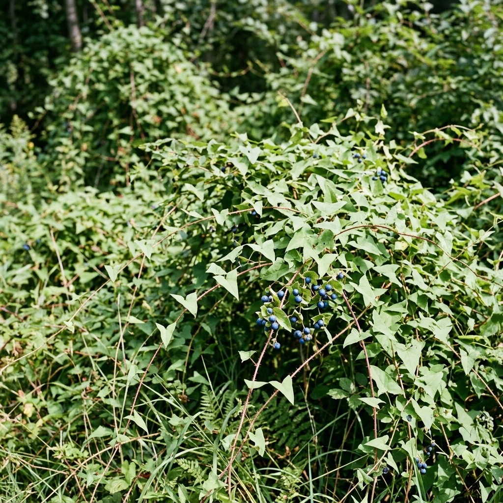 Woody VineSmothers trees and shrubs with dense growth. Colorful berries are spread rapidly by birds. Often confused with wild grape but much more aggressive.